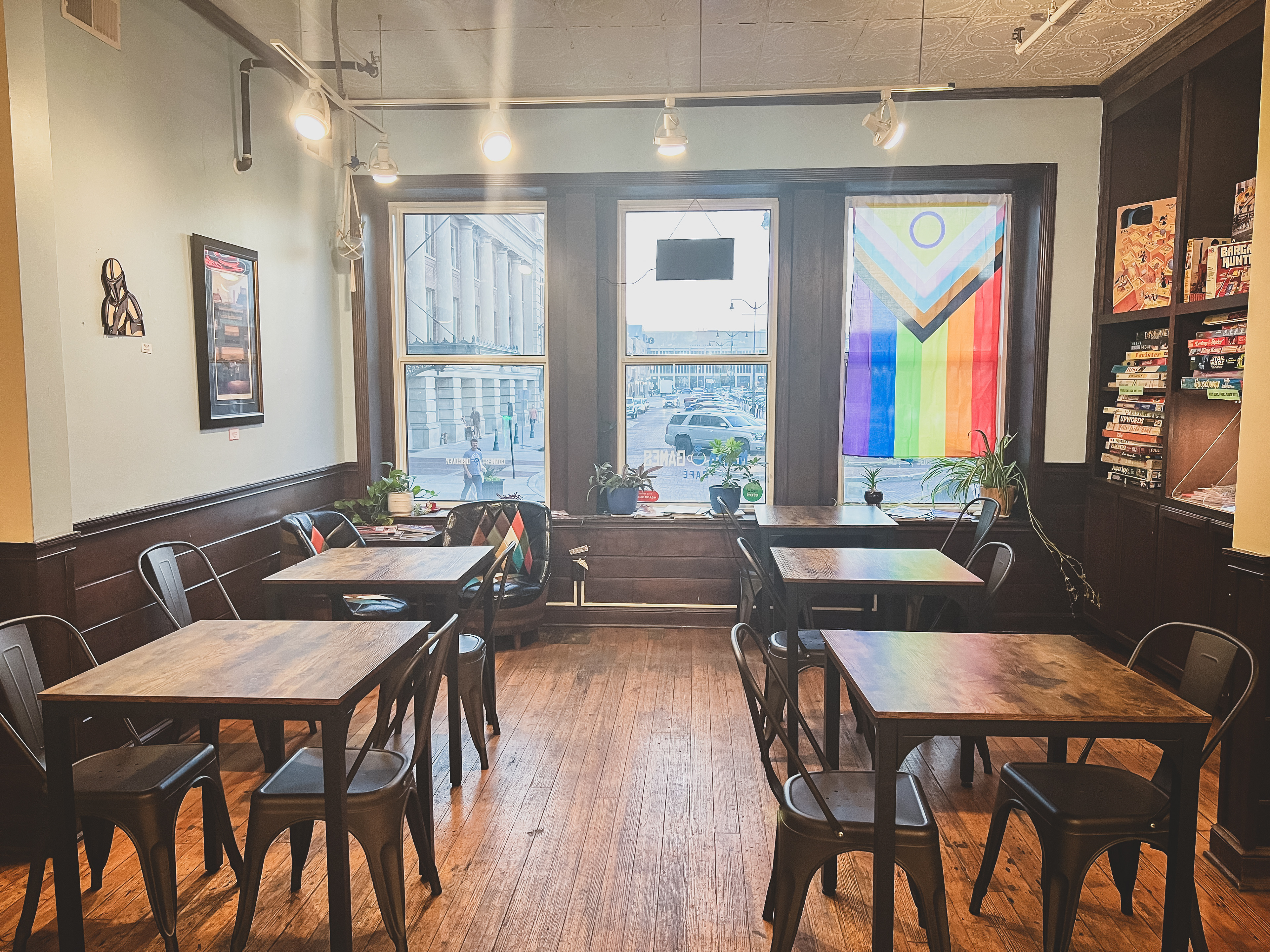 Thanks to the 232 who backed our Kickstarter, our café is now open in the Historic Creamery Building in the Haymarket! We have a library of 1100+ board games, a menu full of freshly-prepared food and locally-sourced coffee and tea, as well as some specialty treats unique to us.