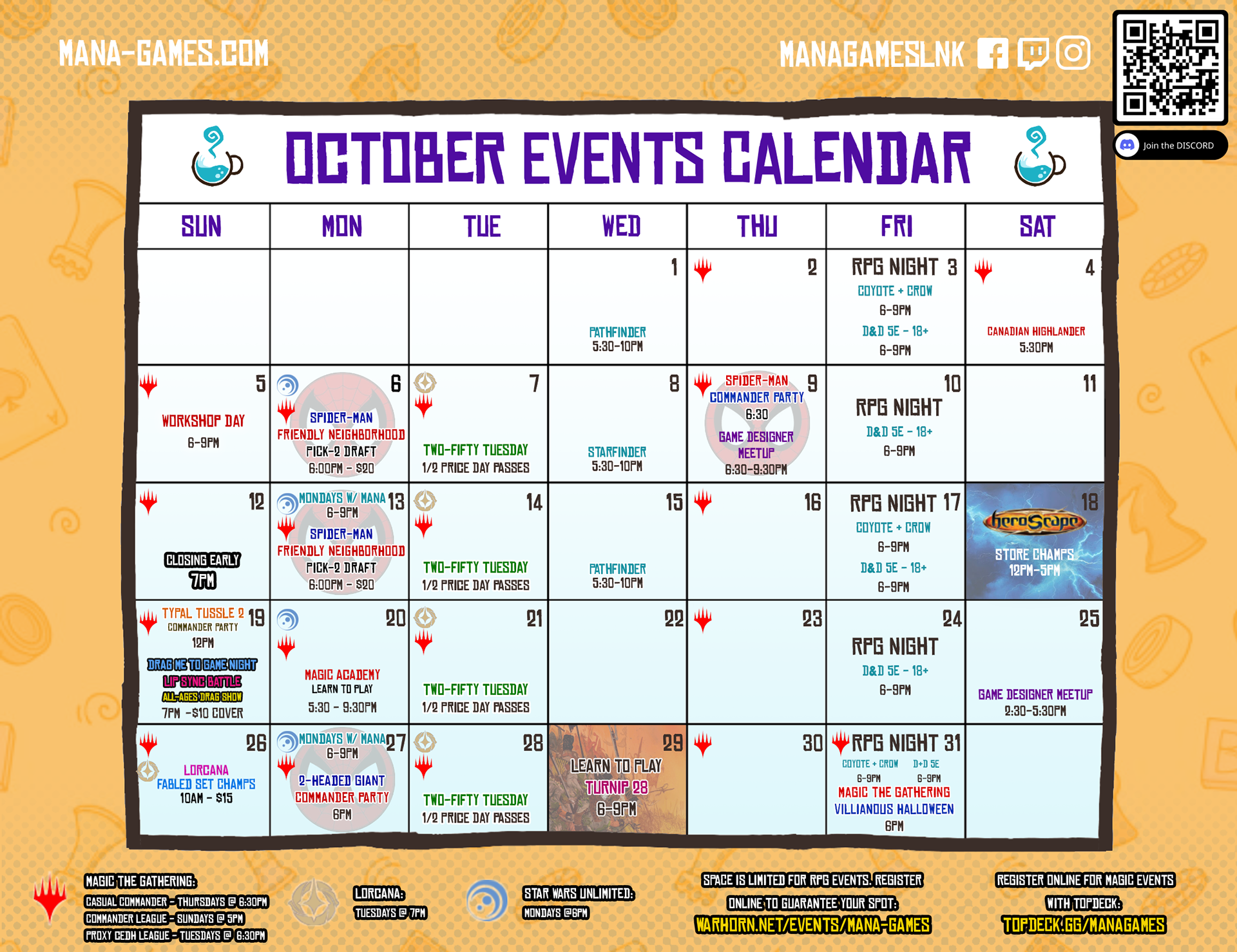 To learn more, check out our Discord where we share all the special events for these card games that don't fit on our regular calendar!